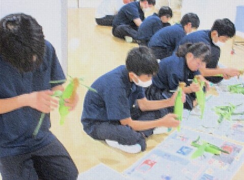 給食の献立「蒸しトウモロコシ」の皮むきの作業を、IJ学級の生徒が行いました。普段は給食の調理員さんが5名で行うところ、IJの生徒が行ってくれたので、30分くらいで綺麗に皮むきができて、調理員さん達からすごく助かったと感謝の言葉をいただきました。