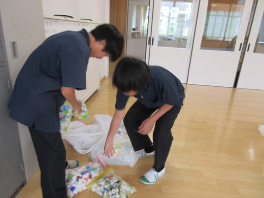 持続可能な社会づくりに向けた教育推進の取組です。総合的な学習の時間では、SDGsについて取り組んでいますが、ボランティア委員会では毎年エコキャップキャンペーンを行っています。ボランティア委員会の呼びかけで、ペットボトルキャップを回収し、業者に買い取ってもらった売却益をワクチンにかえ、世界の子どもたちを救おうという取組を実施します。各クラスで数を競います。