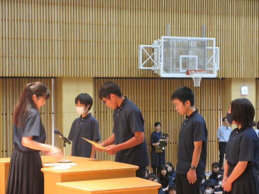 代表で、多く集めてくれた1年E組、2年B組、3年A組、IJ学級に、感謝状をお渡ししました。全てのクラスにボランティア委員長から感謝状を贈りました。