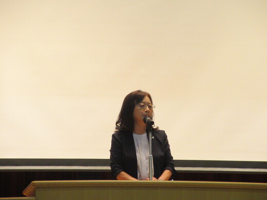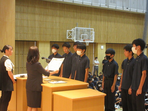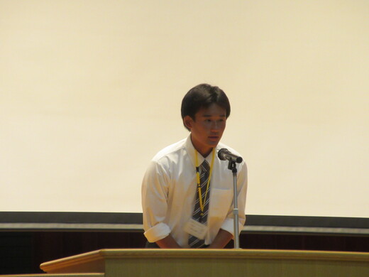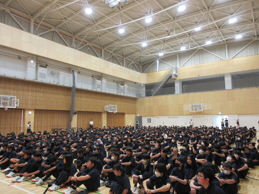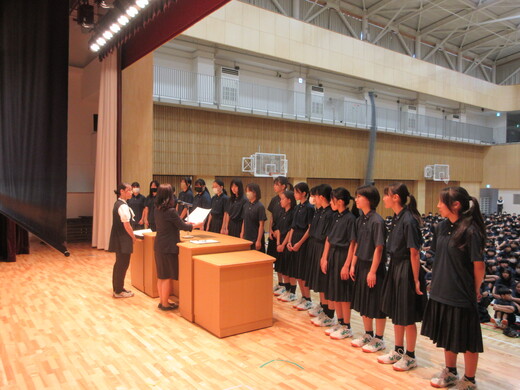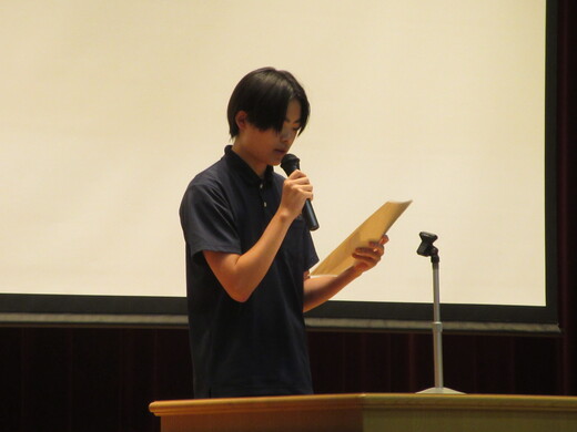 文化行事委員会委員長から、スローガン「一歌一唱 〜Different Voices One Emotion〜」について、そして今週末から始まるクラス練習について話がありました。スローガンは、一人一人の思いをこめ、そして異なる歌声の個性を生かして1つの合唱をつくっていくという意味で委員会で考えました。