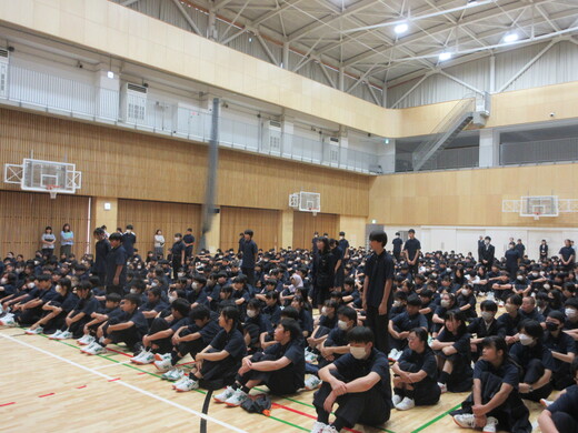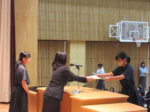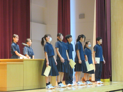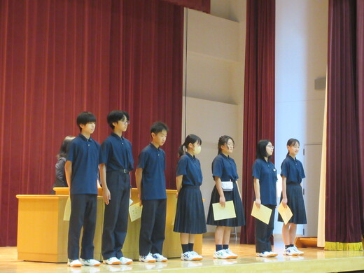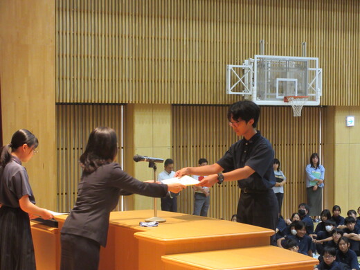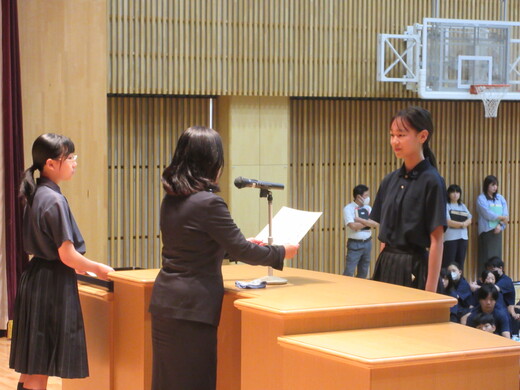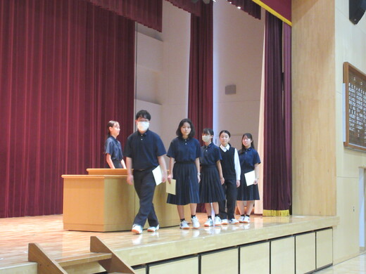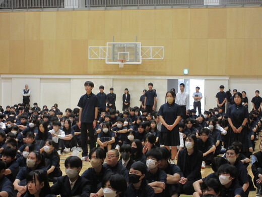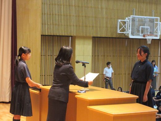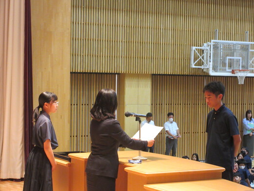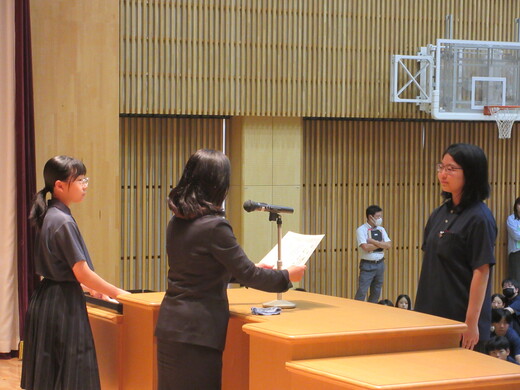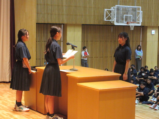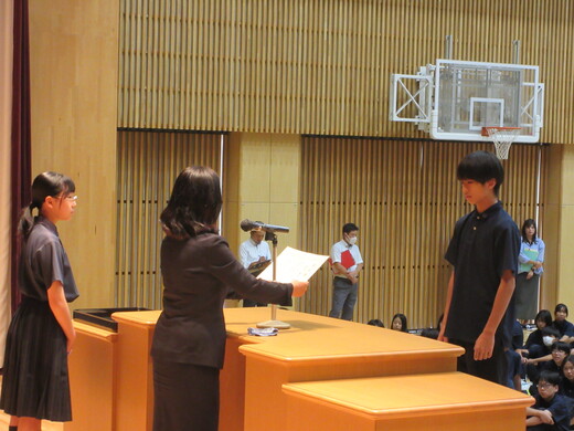 生徒会役員選挙が終わり、生徒会、委員会組織が新旧入れ替わりました。生徒会朝礼で認証式を行いました。