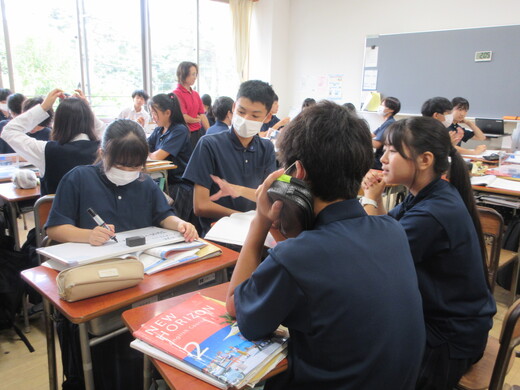 New Wordsや文法の学習をしながら、ペアワークや音読など、スピーキングの力もつけています。