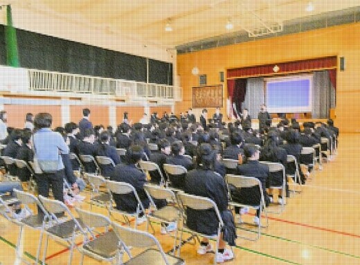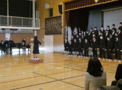 前年度までは、1学期に行っている多摩地区特別支援教育研究会主催のバスケットボール大会の前に、市内のIJ学級で行う練習試合で4校の交流会を行っていました。今年度からは、各学校の合唱祭で取り組んだものを4校で発表しあう交流会を行いました。 今年度は田無第一中学校の体育館で発表しました。緊張しながらも、練習した成果を発表することができました。他校の発表も見学できて刺激になりました。