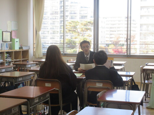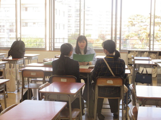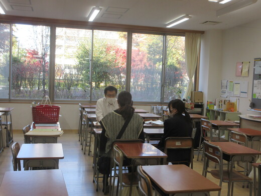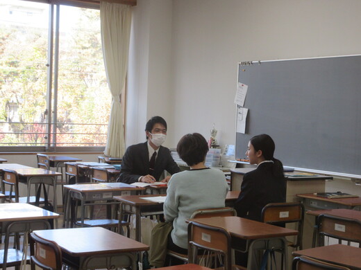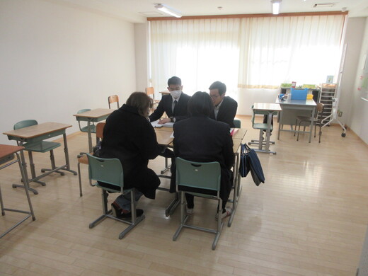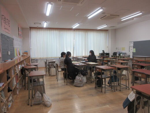 2学期の様子や次年度に向けてなど、担任が生徒と保護者の方とお話しています。3年生は、進路先、受験方法などの最終確認も行っています。今後も何かご心配なことがありましたら、いつでも遠慮なくご相談ください。