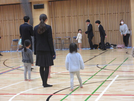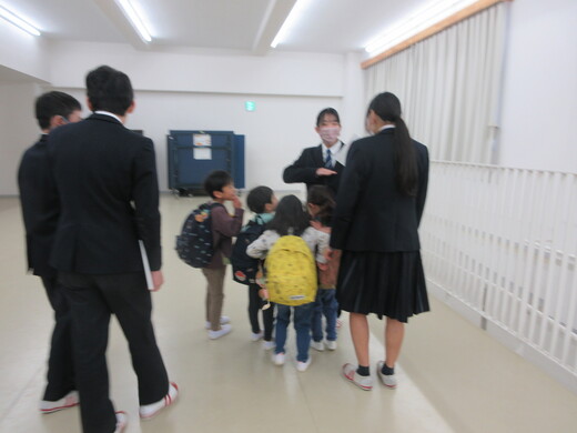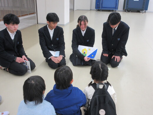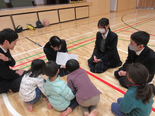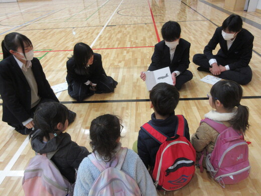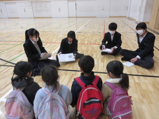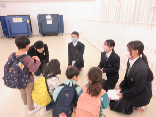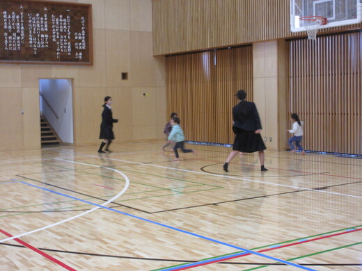 自己紹介のあと絵本の読み聞かせ、そのあとは体育館フロアーがあいていたので、体育館で、こおりおに、だるまさんがころんだ、などの遊びを一緒にやりました。3年生にとっては、入試で忙しい中、癒しの時間いなりました。