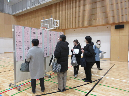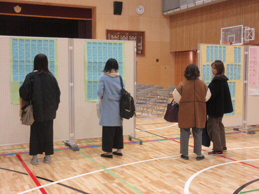 2学期の目標と冬休みの宿題「上級学校調べ」を保護者の方に見ていただきました。