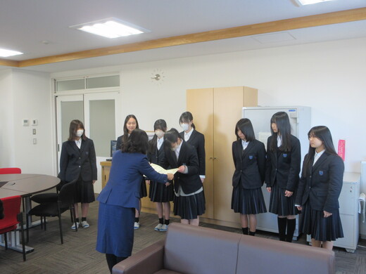 生活指導部の先生から、自分が発する一言が相手を傷つけたりしないかと、相手の気もちを想像できる人になってほしい、またバレンタインの日には、多くの人がどう思うか想像して、学校には持ってこない、帰り道に渡したりしないという話がありました。