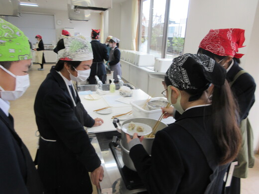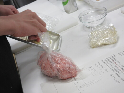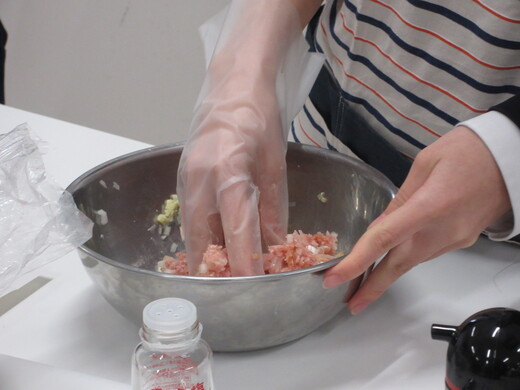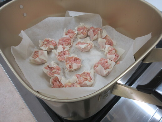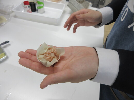 シューマイの調理実習を行いました。シューマイの皮に、肉や野菜のみじん切りなどを入れて蒸しました。ぜひお家でも作ってみましょう。