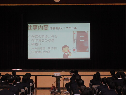 生徒会役員の紹介や、各委員会の紹介などがありました。