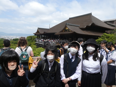 青空と青葉の美しい中、タクシーの運転手さんのお話を伺いながら、京都の名所をたずねることができました。