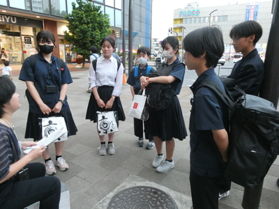 2日目の班行動の疲れや夜の能楽の鑑賞で、朝までぐっすり寝ていましたが、ソーラン節の音楽の放送で元気に起床しました。朝食のあと全員がタクシーの班別行動に出かけました。8時50分には荷物をトラックに積み、タクシーの運転手さんと挨拶をしてタクシーに乗り込みました。