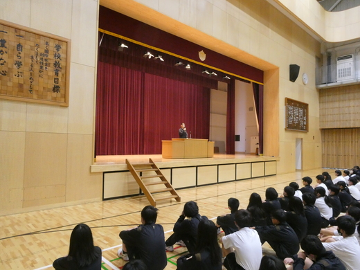 生徒会長から、あいさつ運動のお礼の話がありました。「男子バレー部中心にご協力ありがとうございました、今後もあいさつ運動を全校で盛り上げていきたいのでよろしくお願いします。