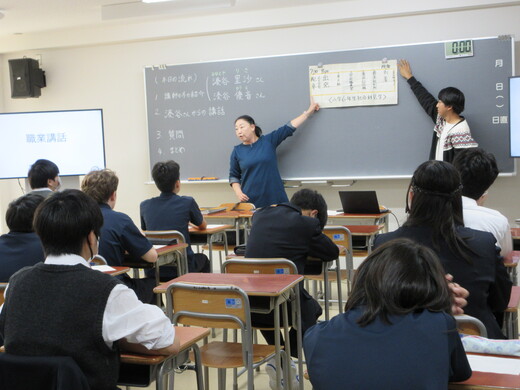 おやじ倶楽部による職業講話(1年生2年生,IJ学級 総合的な学習の時間)