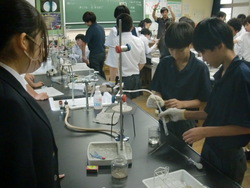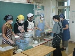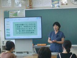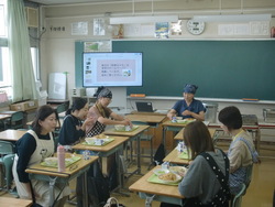 栄養士から給食についての説明があった後、生徒と同様に配膳をして試食を行いました。