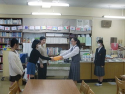 図書委員が作成したしおりを、本町小学校の読書旬間に合わせて、図書委員会の児童にプレゼントしました。