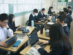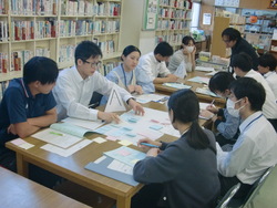 職員室の先生に質問をした後、授業の様子や図書館の見学をしました。