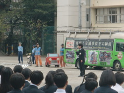 田無警察署の方とスーパードライバースの方々にお越しいただき、自転車安全教室を実施しました。