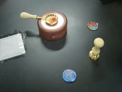 物質の状態変化を体感するために、工業製品として利用されているシーリングスタンプを作りました。