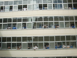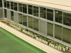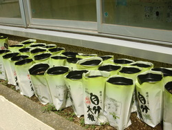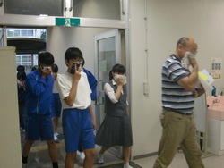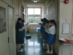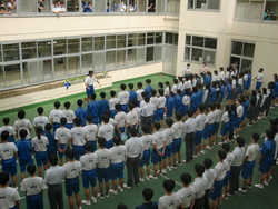 昼休みに中庭で3年生が合唱コンクールの課題曲の合唱をしました。