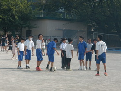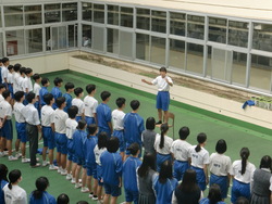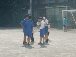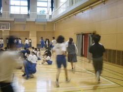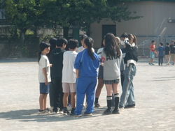 たくさんの小学生が保谷中の校庭に来て、生徒たちと一緒に遊んでいました。