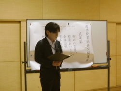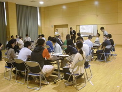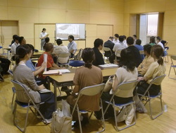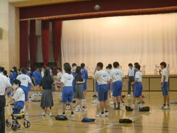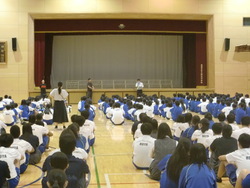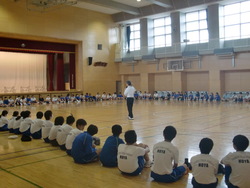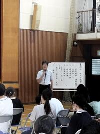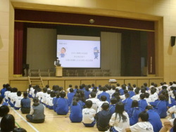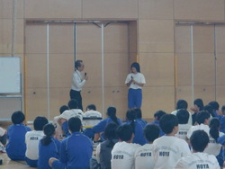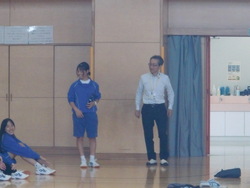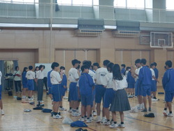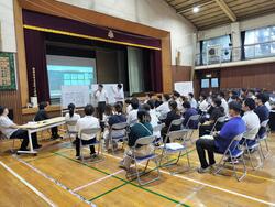 授業後に体育館で道徳公開授業に関する意見交換会を、保護者の方を交えて行いました。