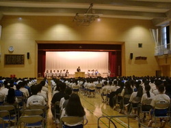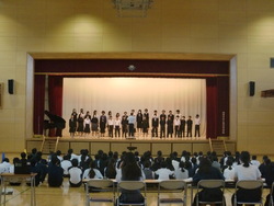 3年生の素敵な歌声にたくさんの生徒たちが聞き入っていました。