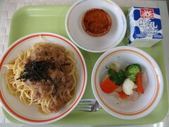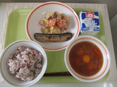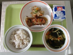 今日の給食は和食の献立です。『さばのみそ漬け焼き』の「さば」は背中が青い「青魚」です。牛肉や豚肉に含まれる脂肪をとりすぎると血管に脂質がたまるなどの生活習慣病が起こりやすくなります。一方、魚に含まれる脂肪は、さまざまな健康維持効果があるといわれています。なかでも、サバ、サンマ、イワシ等に多く含まれているEPA(エイコサペンタエン酸)は血液をサラサラにしてくれます。また、DHA(ドコサヘキサエン酸)は脳や神経の発育に必要な成分で、脳を活性化するといわれています。よくかんで、しっかり食べましょう。