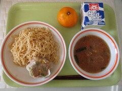 今日から本町小学校が展覧会です。今年のテーマは「本町小万博展覧会」で、今週の給食にはさまざまな国の料理が登場しています。今日の給食は中国の料理です。『しゅうまい』は点心料理の1つです。小麦粉で作った薄い皮の中に、豚ひき肉やみじん切りした玉ねぎなどの野菜、調味料を加えたものを巾着のように包んで蒸します。給食はとうもろこしと枝豆もはいり、具だくさん「焼売」になっています。果物の『みかん』はビタミンCが多く含まれていて、風邪予防の効果や風邪の症状を軽減する効果があります。自分の健康のためにもしっかり食べましょう。