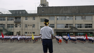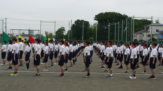 5月25日の第1回全体練習では、全校生徒で入場行進とラジオ体操の動きの確認を行いました。