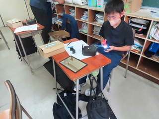 光の実験も、上手く観察できるように各自が工夫をしています。