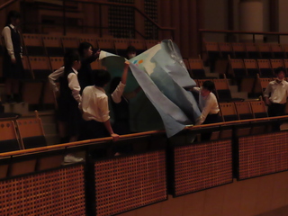 観客席の忘れ物の確認、ステージ、横断幕の撤去、クラスのみんなと帰りたい気持ちを抑えて、実行委員としての仕事を行ってくれています。