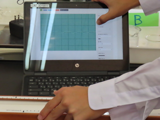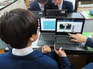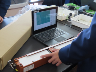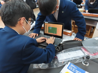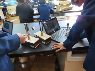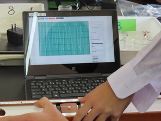 音の世界の学習が進んでいます。今日の理科室では、仮想オシロスコープなるもので、いろいろな音の特徴をとらえようとしていました。