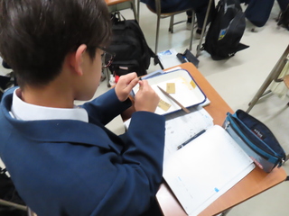 3学期の理科の授業をのぞいてみます。何をしているのでしょうか。何かの作業をしている生徒、タブレットで動画を見ている生徒、教科書を眺めている生徒、プリントを解いている生徒もいます。