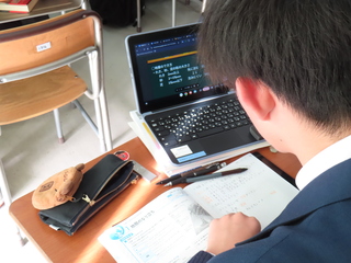 教科書を開いている生徒は、