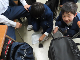 磨いた石の粉末をこぼしてしまったようですが、自分たちで進んで片づけます。