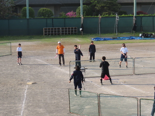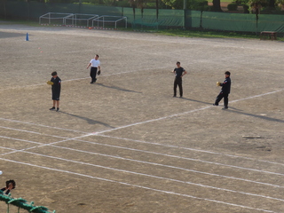 野球部は顧問の先生の近くで指導を受けていました。