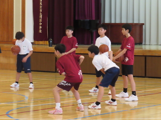バスケットボール部です。すでに先輩と同じ姿勢がとれていますね。