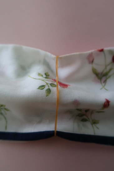 輪ゴムの位置をマスクの横の大きさして、その位置でたたみます。