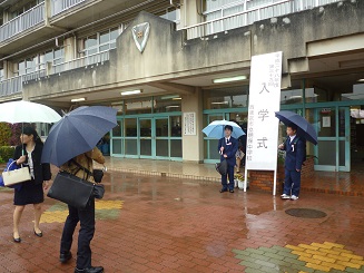 あいにくの雨の中でしたが、新入生125名が明保中学校の生徒として入学してきました。