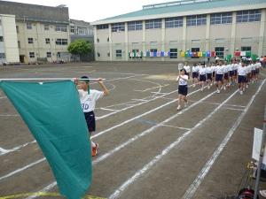 生徒入場 校旗を先頭に