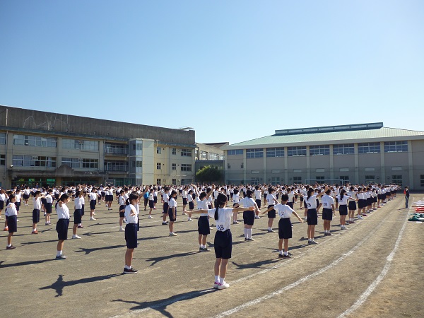 全体練習や学年合同がいよいよ始まります。最初は校庭での行進練習など全体の練習を行いました。雲一つ無い天候のなかで子どもたちは集中して練習を行いました。