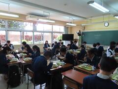 生徒たちは協力して準備を行い、楽しく食事をとっていました。