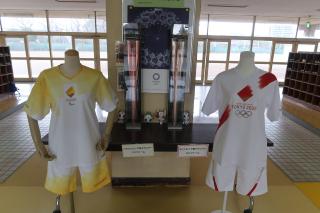 今週月曜日、火曜日の2日間限定で、東京五輪・パラリンピックの聖火リレーのトーチや聖火ランナーのユニフォームをお借りし展示しました。