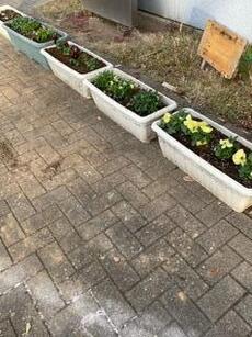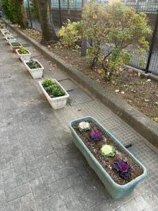 寒い中でしたが、貢献部でパンジー、ビオラ、葉牡丹を植えました。