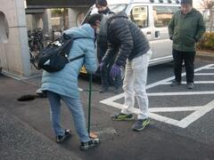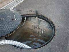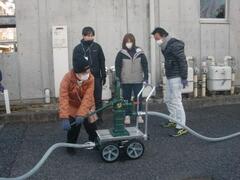 今回は、災害時にはどこから水をひき、どのような仕組みで水が流れるのかなどを中心に説明を受けた後、実際にマンホールのふたを開け、水の流れを制御したり、ポンプに管をつなぐことなどを体験させて頂きました。
