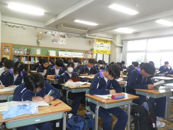 考査の日は、いつも行っている朝読書の時間が勉強の時間になります。その目は真剣そのものです。