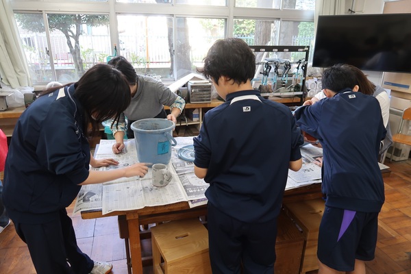 自分の好きな色を選んで、作品を釉薬の中に浸します。