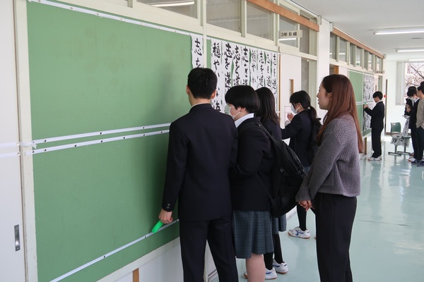 冬休みの宿題で提出された作品を係の生徒たちが展示しました。