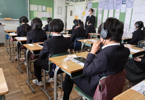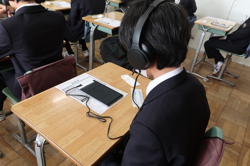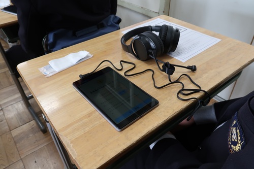 それぞれがヘッドセットを装着し、端末でテストに取り組みました。
