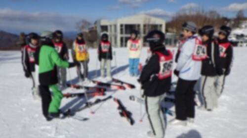 まずは、靴やスキーを履くところからスタートです。